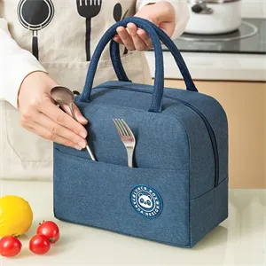 This insulated Japanese-style lunch tote is crafted for both function and fashion. Made with thickened aluminum foil lining, it keeps meals warm or cool for hours-perfect for school, office, or outdoor use. The roomy interior (8.66 x 5.51 x 7.48 inches) accommodates lunch boxes, snacks, drinks, and fruits with ease. Its durable oxford fabric exterior features a UV-printed logo and a wide zippered opening for quick access. The front pocket is ideal for utensils, napkins, or personal items. Reinforced handles ensure comfortable carrying. A perfect choice for students, commuters, and anyone who loves convenient, stylish food storage on the go.
